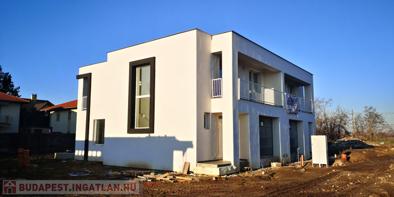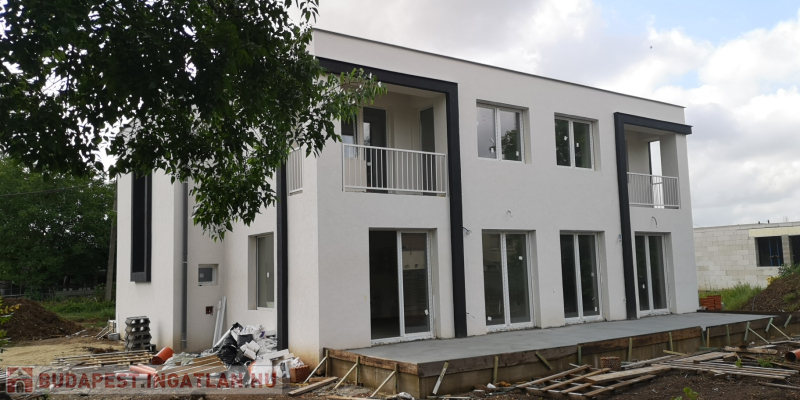 Pestszentlőrinc csendes, kertvárosi részén összesen 152 m2-es, kétszintes, nappali + 4 szobás, 2 fürdőszobás, garázsos, utca felől nézve jobb oldali ikerházi lakás napelemmel 375 m2-es telekrésszel 2025 nyár végi átadással eladó. Infrafűtés, klíma kiállások szobánként, elektromos bojler, műanyag homlokzati nyílászárók 3 rétegű, hő- és hangszigetelt üvegezéssel, hőszigetelt főfalak, tetőtér és aljzat.