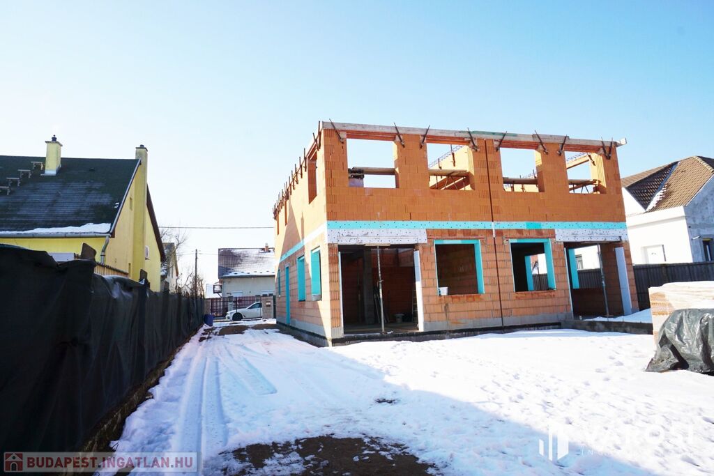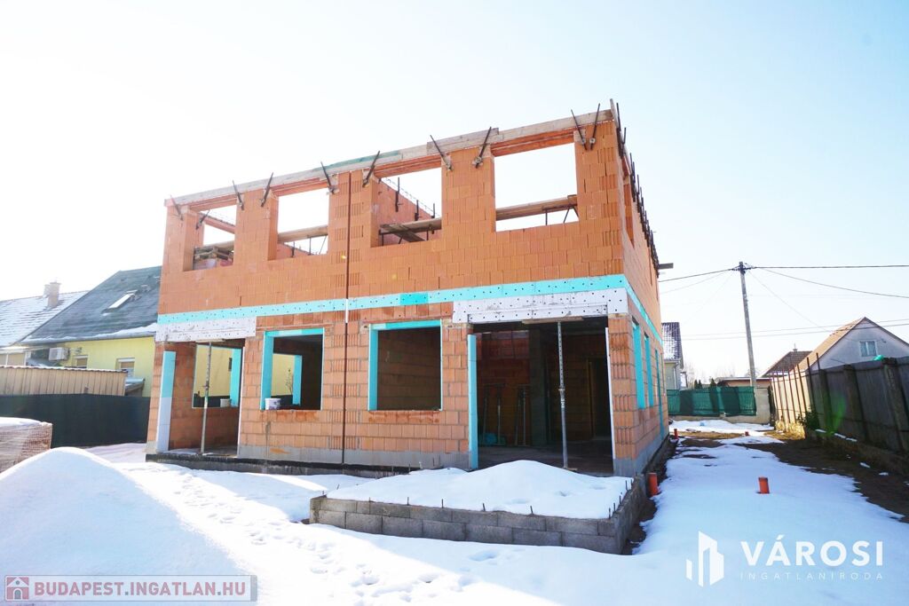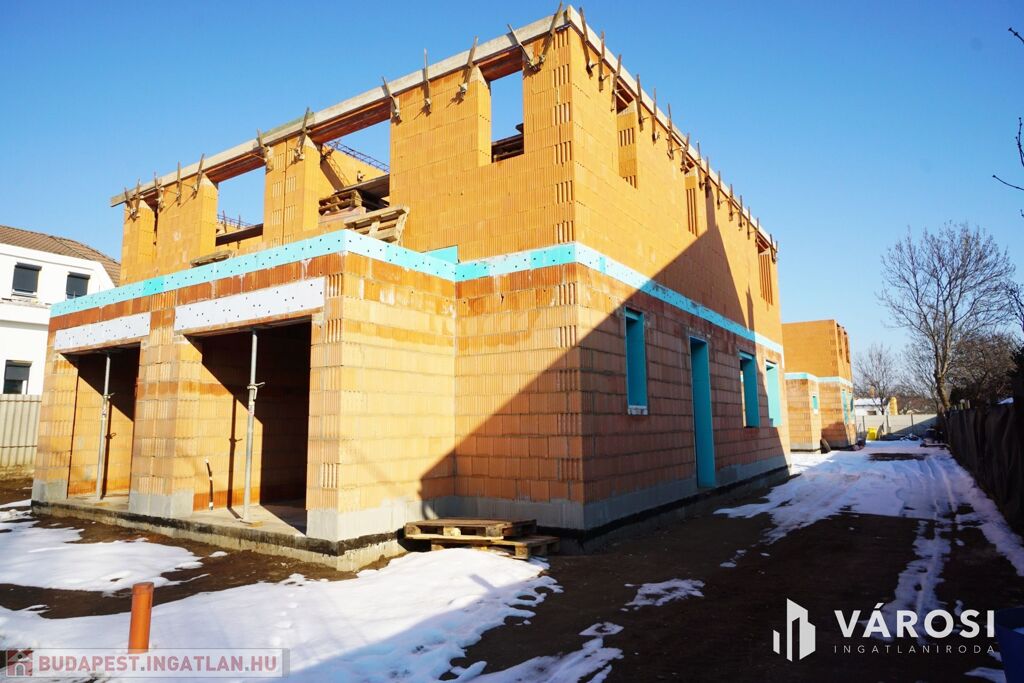 Eladó Budapest egyik legkedveltebb városrészében, a 18. kerület Erdőskertben, egy új építésű 118 m²-es ikerfél, 12,34 m2-es terasszal, 293 m2-es leválasztott telekrészen.