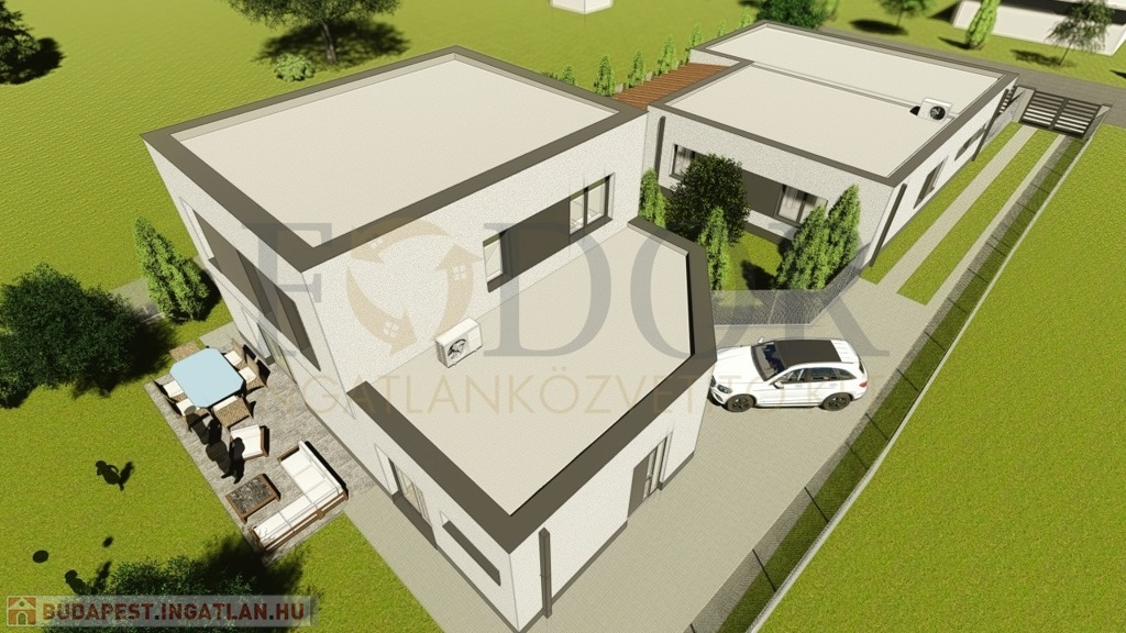 A projekt során két különálló ház épül egy osztatlan közös telken, teljesen elkülönített bejárattal, kertrésszel és közműórákkal. A házak ügyvédi használati megosztással kerülnek értékesítésre.