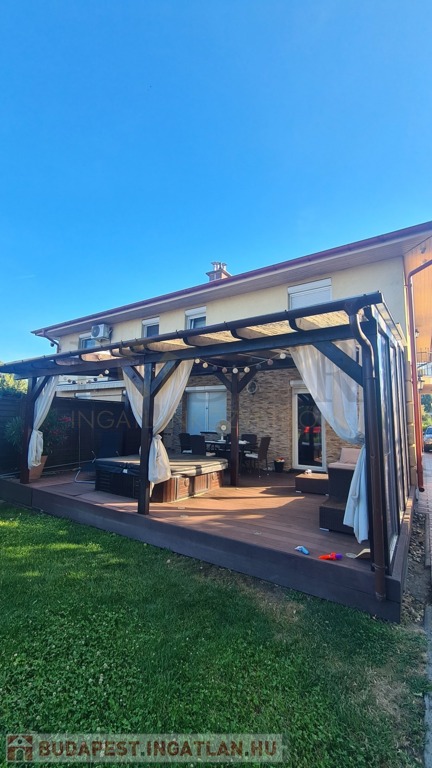 beépítésre. 2019-ben 32 kw-os zárt égésterű kombi gázcirkó cseréje megtörtént alsó szinten padlófűtés, emelti szinten radiátoros fűtés üzemel. 2024-ben 5 KW-os, szaldós rendszerben elszámolt napelemes rendszer került felszerelésre. Az épület számos extrával felszerelt, riasztó és kamerarendszer, 35 nm-es polikarbonáttal fedett és wpc-vel burkolt terasz jacuzzival, kerti halastó, elektromos árnyékoló, automata öntözőrendszer, elektromos motorizált nagykapu, ledvilágítás. Az ingatlan osztatlan közös