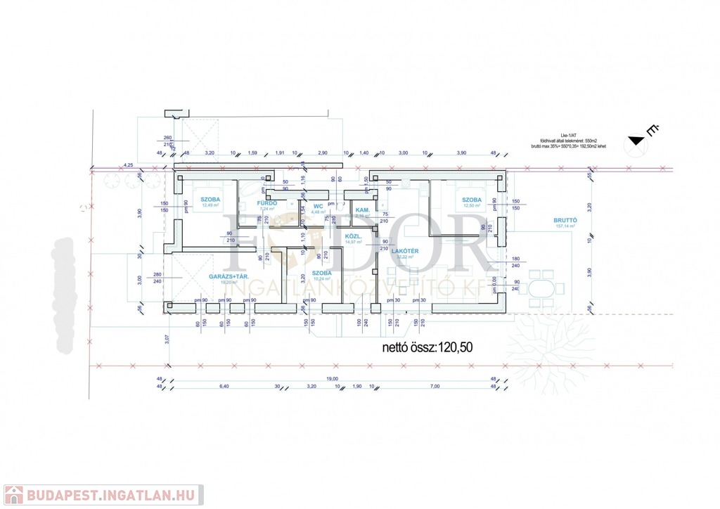 A ház egyszintes, nettó 101,3 m² alapterületű + 19,20 m² garázs, tágas és élhető kialakítással: