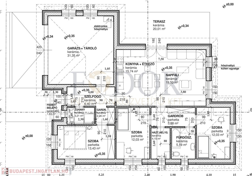 Hasznos alapterülete: 99,8 m² + 31,36 m² garázs-tároló, valamint egy 20 m²-es terasz egészíti ki a kényelmes életteret.