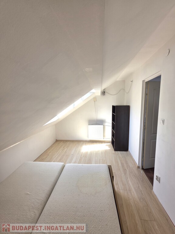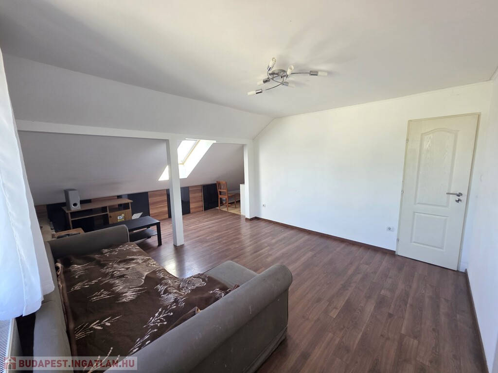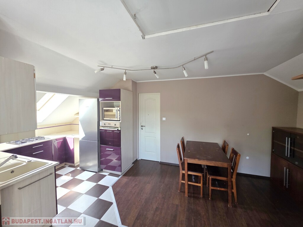 Tetőtéri lakás (60 m²): Ideális stúdiólakásnak vagy vendégtérnek. Étkező, konyha egy légtérben található, a fürdőszoba és a nappali az étkezőből nyíik. A nappaliból pedig félszoba nyílik. A lakás állapotát tekintve átlagos, kisebb javítások után azonnal kiadható.