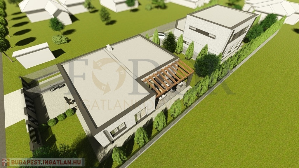 A ház egy osztatlan közös telken épül, ügyvédi használati megosztással, külön közműórákkal és teljesen szeparált bejáratokkal.