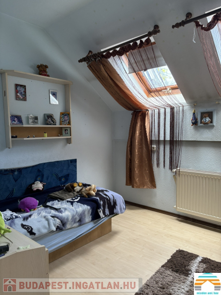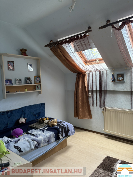 - 2. szint: nagyméretű előtér amiből a szobák külön nyílnak, 4 hálószoba, konyha, fürdőszoba, WC.