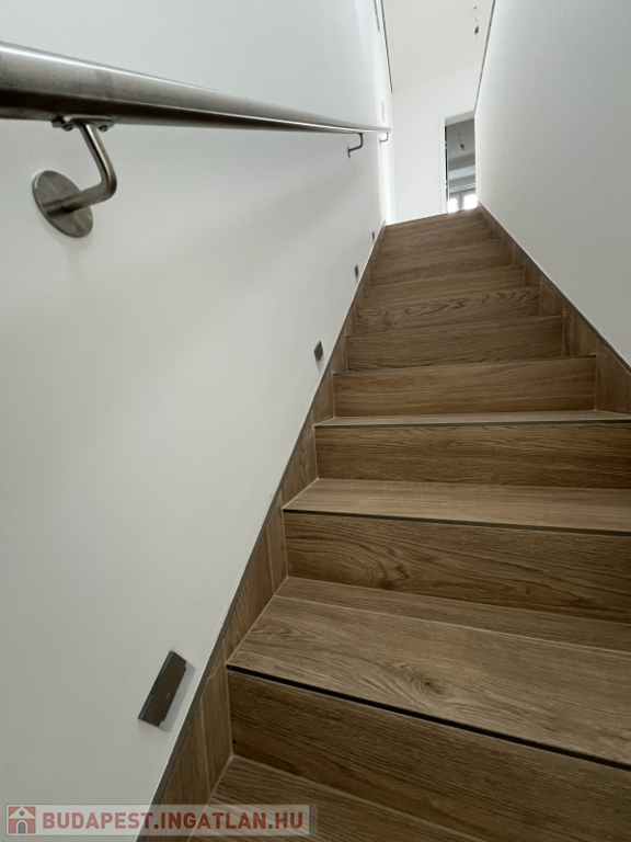 Épület körül nagy méretű trendi térburkolattal, növény sáv elválasztó szegélyekkel, szigetelt kerti tároló. Lapos tetőre jutás 3 rétegű üvegezésű Velux kupolán keresztül történik, belső vízelvezetéssel, szikkasztókkal.Jelenleg többféle típusú ház van eladó, az árak a ház méretétől ,szobaszámától,felszereltségétől változik 189mft- 239mft között !