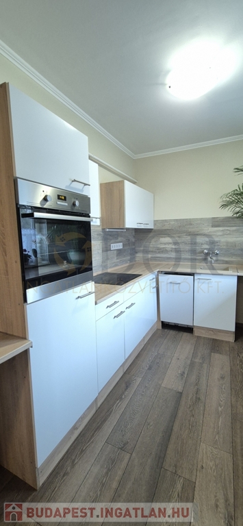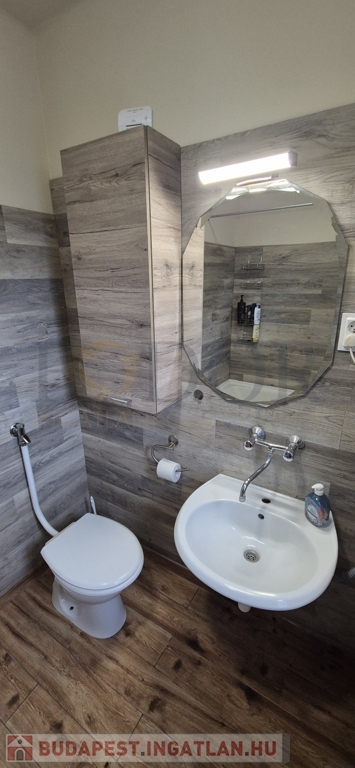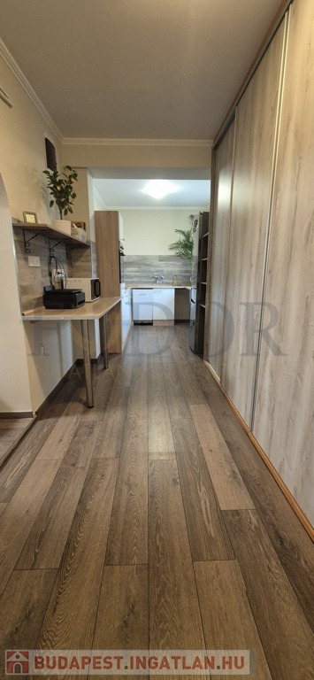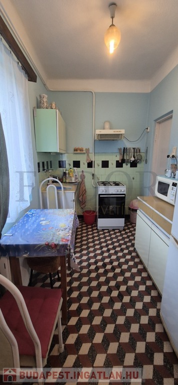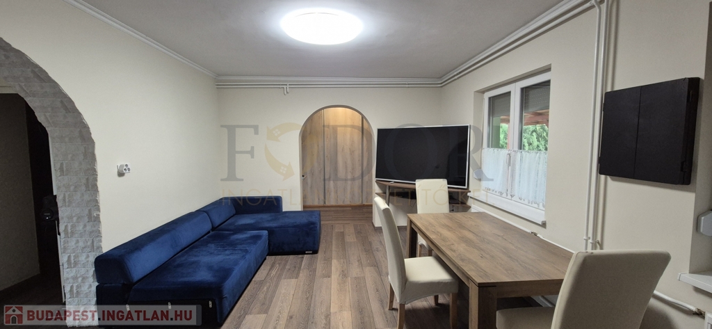 A kisebb, 53 m²-es lakrész felújítandó, így új tulajdonosa saját ízlésére formálhatja. Elrendezése praktikus: előszoba, konyha, kamra, fürdőszoba, külön WC, két szoba, és egy 19m2 terasz áll rendelkezésre.