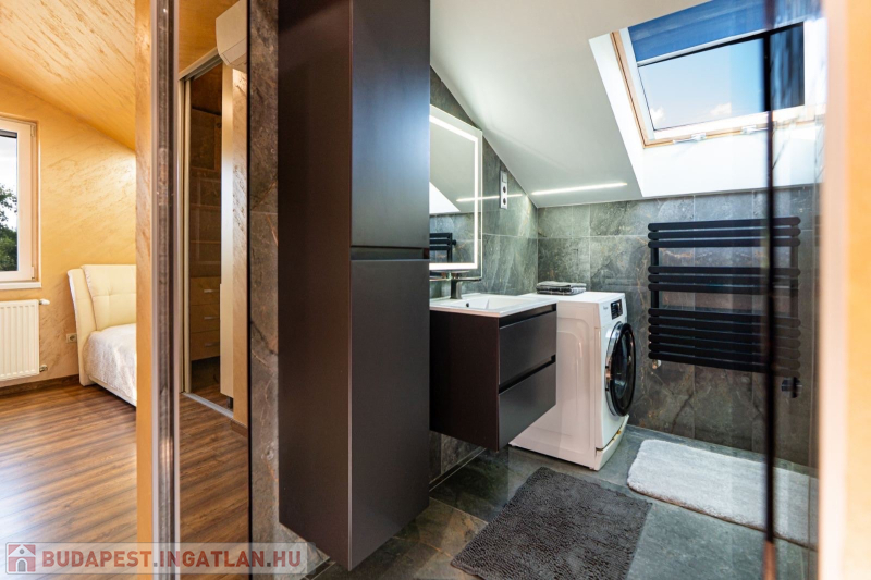 Műszaki:Főfalak 30-as porotherm tégla,válaszfalak 25 cm , fűtés kondenzációs cirkó 32 KW, radiátor és padlófűtés, 3 rétegű hőszigetelő üvegezésű kívül színes bukó-nyíló nyílászárók, 10 cm-es dryvit szigetelés, riasztó ,alumínium redőny ,szúnyogháló beépítés , hűtő-fűtő klímák több helyiségben, padlófűtés, elektromos kapu és garázskapu, cserépfedés,térkövezés,kerti faház (9 m2), öntöző rendszer, hőszivattyúról fűthető medence( 6 x 3méteres), fénytechnika,kerti világítások,fedett terasz,kerti bútorok,sütögető, 9 db tv a házban (47colos-75colos), wellness részleg 6 fős finn szauna zuhanyzóval .