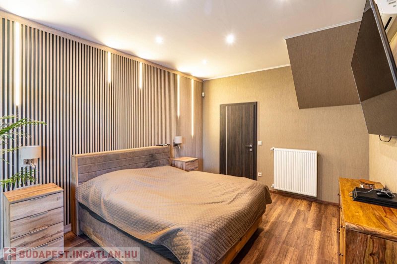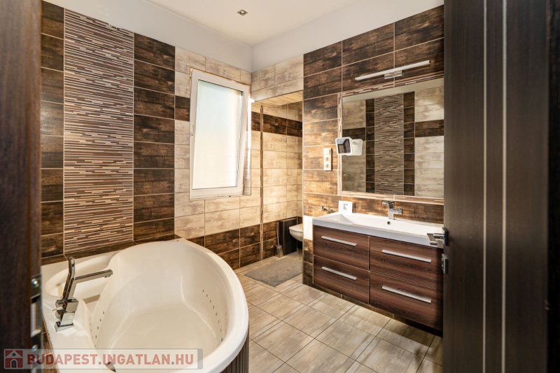Kizárólag nálunk Pestszentlőrinc legkedveltebb részén Bókay telepen, luxus minőségű nettó 210 m2-es plusz fedett terasz (20 m2) plusz fedett gépkocsi beálló (36 m2), 4 +1 fél szobás, garázsos (18m2), 4 prémium fürdőszobás,4 WC, gardróbos, modern építésű családi ház újszerű állapotban eladó 629 m2-es telekkel, minőségi kivitelezéssel. Az ingatlan földszintje 150 m2-es (4 szobás) , két fürdőszoba, 3 Wc , gardróbszoba, az emelet (60m2-es) háló szoba , gardrób, wellness részleg ,konyha , két fürdőszoba plusz WC található .