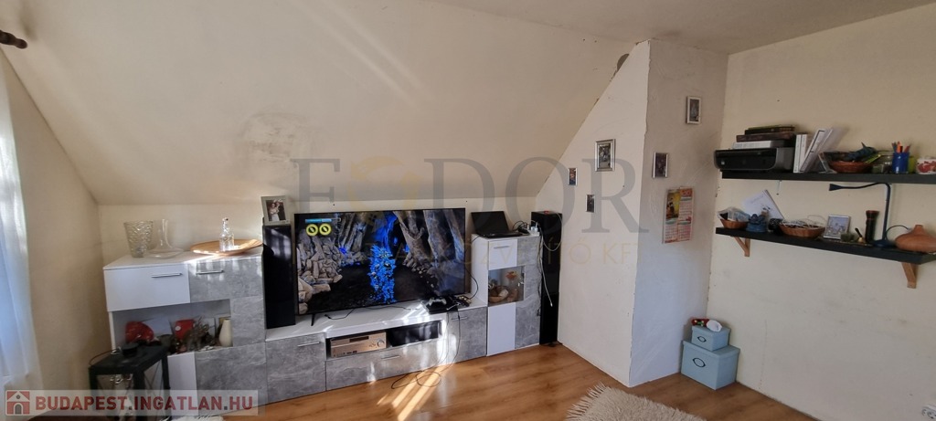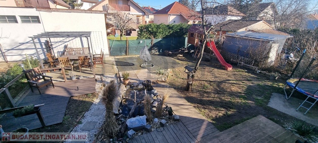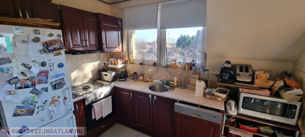 Eladásra kínálok egy két szintes családi ház tetőtéri szintjét kertkapcsolattal Budapest XVIII. kerületében, Glóriett telepen, a Gyékény tér közelében.