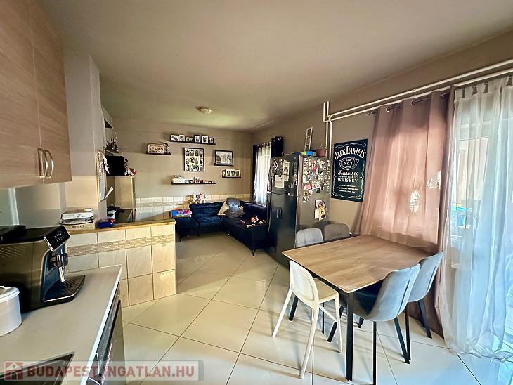 Az ingatlan tégla falazattal, beton alappal és beton födémmel épült, jó elosztású, AMERIKAI KONYHÁS NAPPALIVAL, TERASSZAL ÉS 40 NM-ES PINCÉVEL.