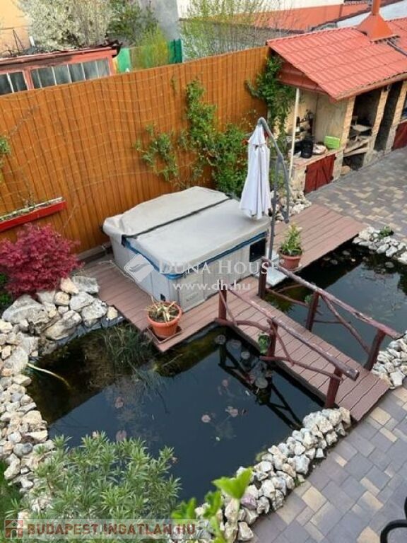 egy gyönyörű több generáció számára is alkalmas családi ház!A ház nagyon kellemes környezetben , kerti tó, kültéri Jacuzzi fedett grillterasz környezetében található.A rendezett udvarban több autó parkolására van lehetőség, a haza érkezőket elektromos kapu engedi be.A ház szerves részét képezi a már említett fedett grillterasz, mely mindenféle főzési , és sütési lehetőséget magában rejt, mert egy jól felszerelt konyha várja a szakácskodni vágyókat.Kellemes , szabadtéri időtöltés lehet , baráti társaságok fogadása, ezen a csodálatos környezetben.Az előszobából a házba belépve hatalmas terek szolgálják a kényelmünket.Kiemelném a fagerendás mennyezet szépségét, mely az alsószinten a helyiségeket jellemzi.A nappali mellett étkező és egy épített fatüzelésű , vízteres párkányra ülős kandalló növeli a komfort érzésünket.Innen a teljesen felszerelt, 2021.ben vásárolt kitűnő minőségű gépesített modern konyhába érkezünk .Tovább haladva egy háztartási helyiség ,két fürdőszoba és egy vendég szoba található, melyet ha elválasztanánk egy generáció lakhatására is alkalmassá lehet varázsolni.A zárt lépcsőházból az emeletre egy közlekedő folyosóra jutunk, ahonnan 3 szoba nyílik. A szobák mindegyikéből kitudunk jutni az emeleten épült teraszra.Ezen a szinten is található egy gyönyörű fürdőszoba.Az igényesen megépített Mediterrán stilúsú házból semmi sem hiányzik, minden adott, hogy az új tulajdonosa kellemes , igényes környezetben éljen.A közlekedés kitűnő, iskola , óvoda, bevásárlási lehetőség a közelben.Ha felkeltettem az érdeklődését, kérem hívjon , hogy megmutathassam ezt a gyönyörű, vonzó ingatlant.