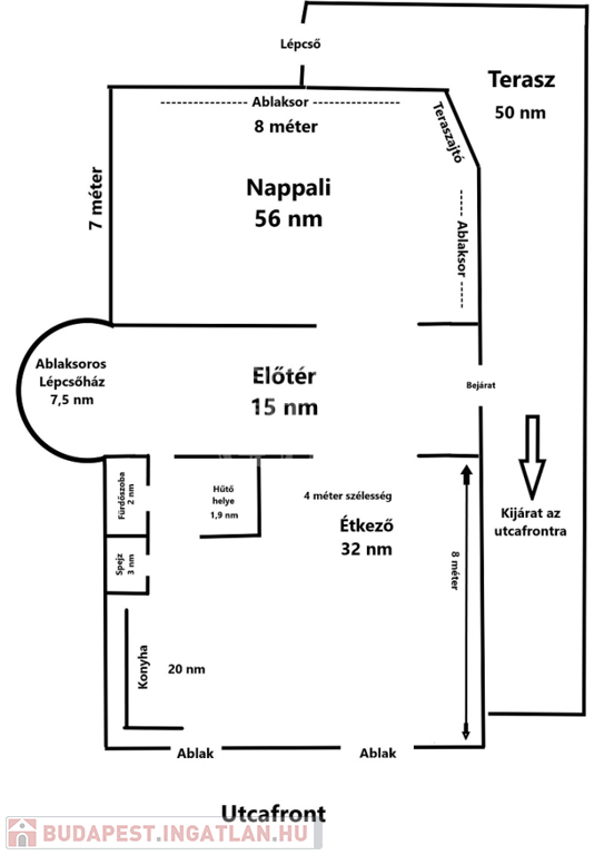 Földszint 144 m2 nappalival 56 m2 , nagy étkezővel és konyhával 52 m2 , minden szinten fürdőszobával . ,fürdőszoba ,spejz ,közlekedő és lépcsőház