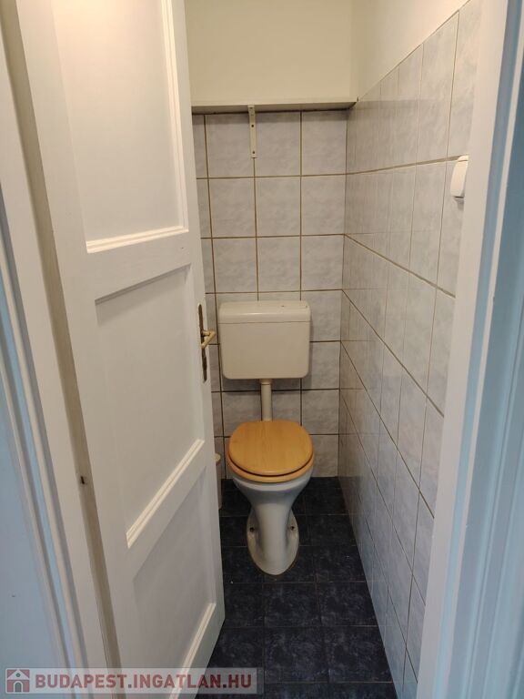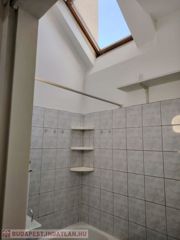 A fürdőszoba kádas, világos tetőablakkal, kúlön helyiségben van a WC.