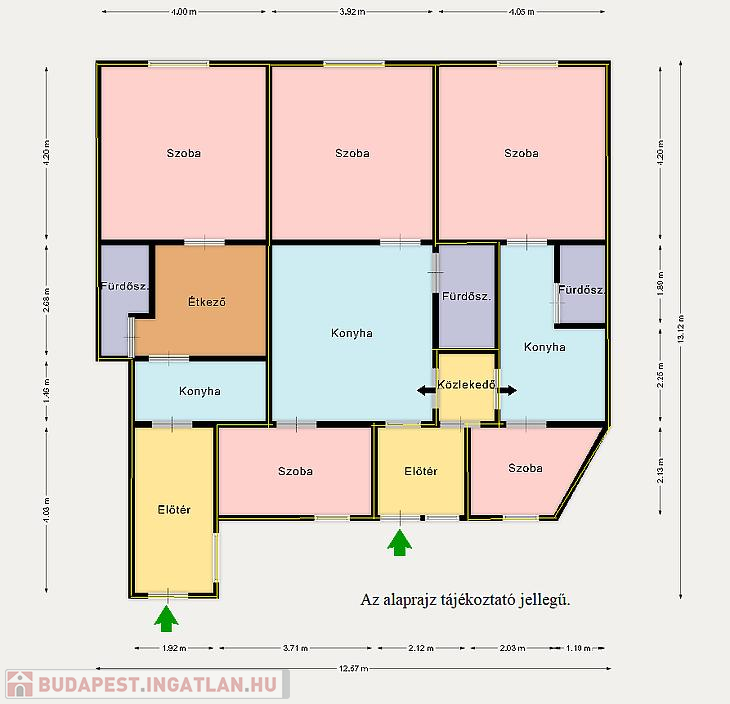 Az egykoron egygenerációs családi házban az idők során három külön összkomfort került kialakításra, tehát a jelenlegi elrendezése szerint háromgenerációs családi házként szolgál. Így összesen 3 szoba+2 félszoba, 3 fürdő és 3 konyha/főzőfülke található az ingatlanban.