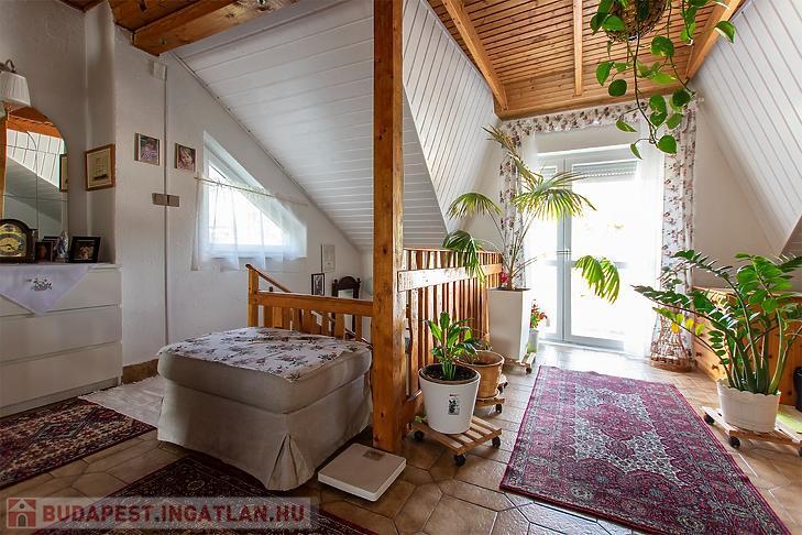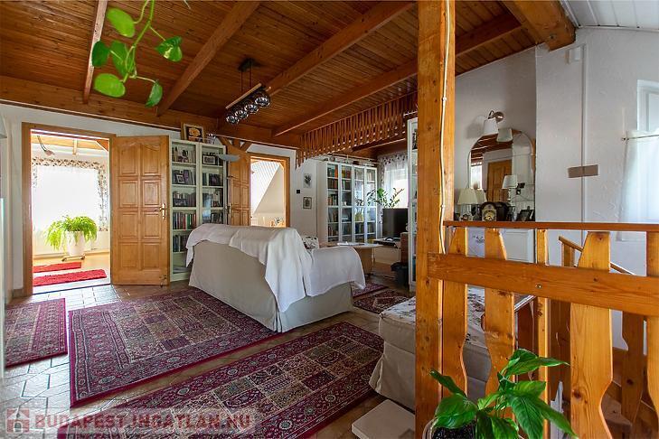 Az ingatlan 4 és fél szobával rendelkezik, 2 és fél szobával a földszinten és 2 külön nyíló szobával az emeleten. Az emeleten 45 négyzetméteres nappali rész fogad minket, ahol akár egy külön konyha is kialakítható könnyedén. Így akár rövid időn belül 2 generációssá is formálható az ingatlan. Az emeletről egyből ki tudunk sétálni a kerti teraszra.