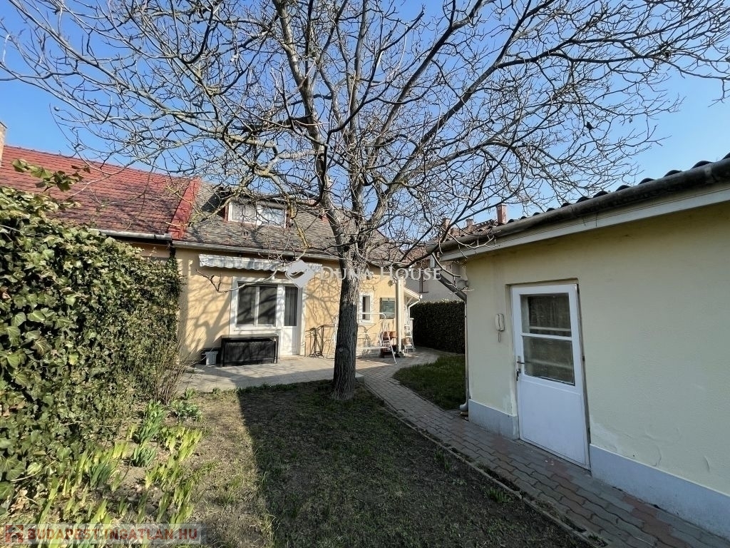 Eladó per- és tehermentes ikerház Csepel egyik legszebb utcájában!Megvételre kínálunk egy téglaépítésű, két szintes családi házat Budapest XXI. kerületének egyik legkedveltebb részén, a Hollandi úton, közvetlenül a Kis-Duna közelében.Az 1970-es években befejezett ingatlan az évek során több felújításon esett át, így műszaki állapota folyamatosan karbantartott:2012-ben teljes szigetelést kapottKülső-belső festés-mázolás történtÚj radiátorok és új kazán került beszerelésre8 éve klímaberendezések lettek telepítve (mindkét szinten komfortos hőmérséklet télen-nyáron)A földszinti nagy fürdőszoba 2020-ban teljes körű felújításon esett átA ház elosztásaFöldszint:Kényelmes előtérTágas, világos konyha-nappali, utcára és kiserdőre néző terasszalNagyméretű hálószoba, kertkapcsolatos, csendes terasszal tökéletes pihenőhelyFelújított, kádas fürdőszoba WC-vel, mosógép számára kialakított hellyelA nappaliból lépcső vezet a tetőtérbe.Tetőtér:Itt egy teljes értékű, külön lakás került kialakításra:NappaliKonyhaKádas fürdőszobaTágas hálószobaKorábban külső lépcsőn keresztül is megközelíthető volt, így igény esetén ismét teljesen különálló lakássá alakítható kiváló lehetőség többgenerációs együttélésre vagy kiadásra.Kert, parkolás és melléképületA kert ideális méretű: könnyen gondozható, mégis van hely veteményesnek, játszótérnek vagy akár kutyának is.Az ingatlanhoz tartozik egy 15 m²-es saját garázs, valamint az udvarban további 2 autó számára kényelmes parkolási lehetőség biztosított.A főépület mögött található egy 42 nm-es melléképület, amely egy önálló kis lakás:KonyhaFürdőszobaNappali-hálószobaFelújítandó állapotú, de akár egy tisztasági festés után is lakható kiváló lehetőség bérbeadásra, vendégháznak vagy vállalkozási célra.KörnyezetA ház elülső teraszáról csodás kilátás nyílik a Kis-Dunát övező kiserdőre. A Hollandi út valódi rekreációs paradicsom:200 méterre található a Ráckevei DunaágA közelben elérhető a Csepeli StrandfürdőKajak-kenu telepModern játszótérA Csepeli kompÉs mindössze 200 méterre egy kiváló cukrászdaIdeális választás azoknak, akik természetközeli, vízparti környezetben szeretnének élni, mégis Budapesten.