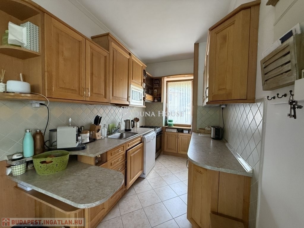 Az alsó szinten, amely a Hollandi út felől földszinti lakrész önálló bejárattal, 2 nagyméretű szoba, egy háztartási és/vagy fürdőszoba, zuhanyzós mellékhelyiség, kazánház, előszoba és közlekedő résszel, beépített bútorral került kialakításra.