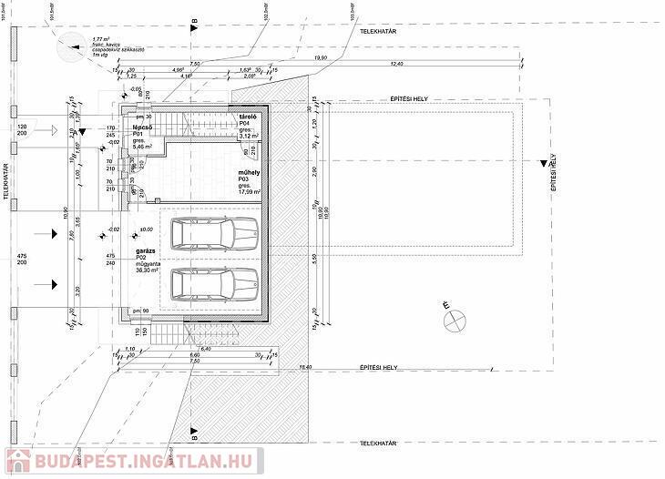 A házhoz egy kétállásos garázs tartozik, ahova a motoros kapu kényelmes és biztonságos bejutást biztosít, valamint egy különálló, 18 m²-es tárolóhelység, amely műhelyként, dolgozószobaként vagy sportszobaként is használható.