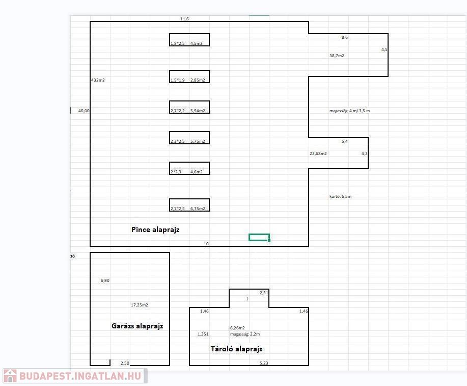 - Alapterület: földszint + kb. 500 nm pince