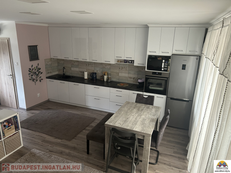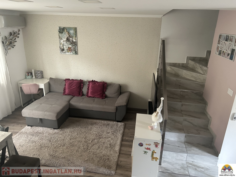 Ez a két szintes, 70 négyzetméteres ingatlan 2020-ban épült, újszerű állapotban. A lakásban három jó méretű szoba található, ahol mindenki megtalálhatja a saját kis világát. Az összkomfortos otthonban a fűtést korszerű, gázkonvektorok biztosítják, a 15 cm szigetelés pedig segít a rezsi költségek csökkentésében, ami csak 25 000 forint körül van. A légkondícionálásnak köszönhetően nyáron is kellemes a hőmérséklet.