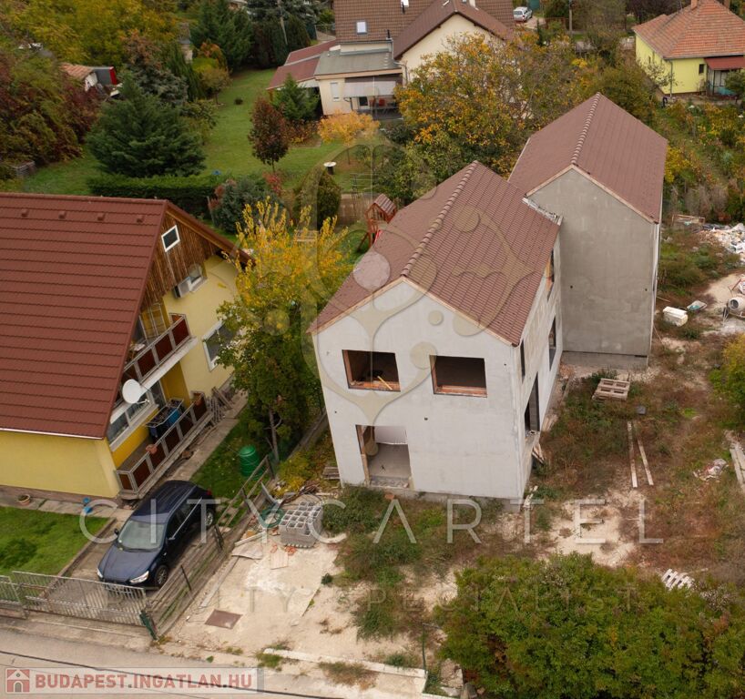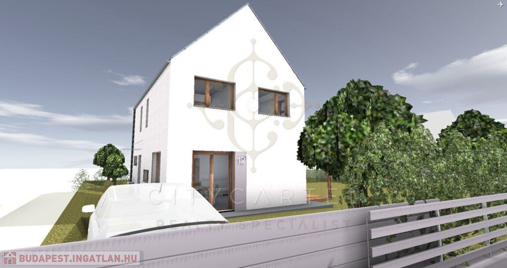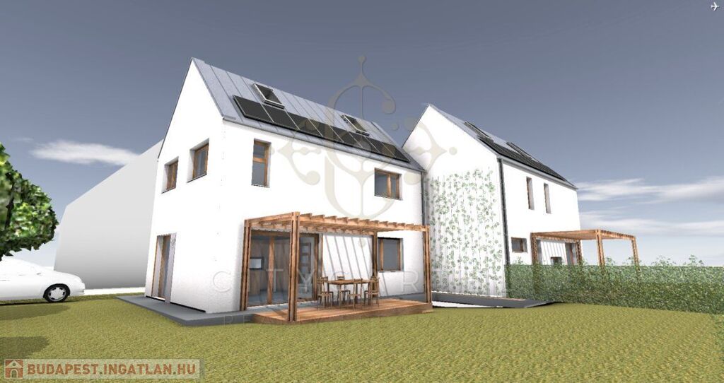 Újépítésű ikerház mindkét fele eladó Budafok csendes utcájában. A két 95 nm-es lakóterületűre tervezett ház csak részben érintkezik.