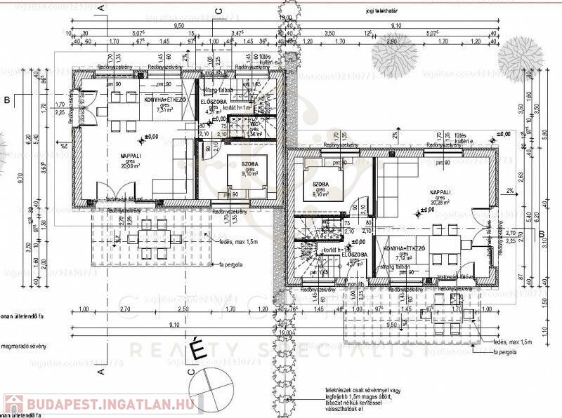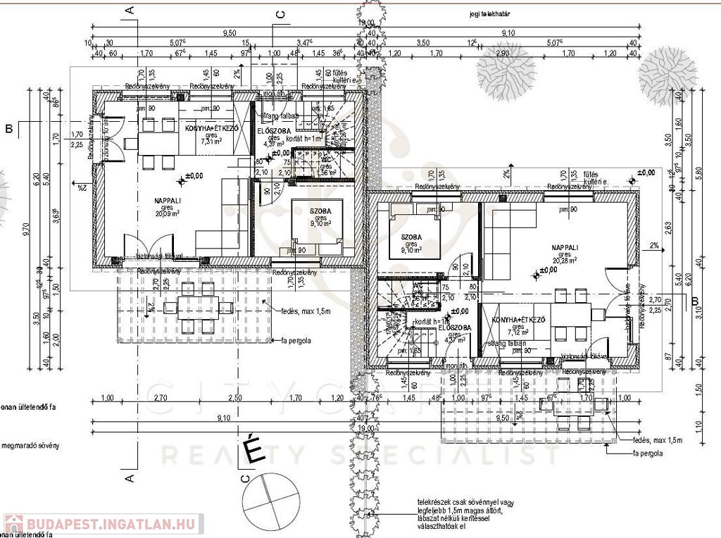 - Mindkét házrész 95 nm-es +7 nm-es terasszal fog rendelkezni.