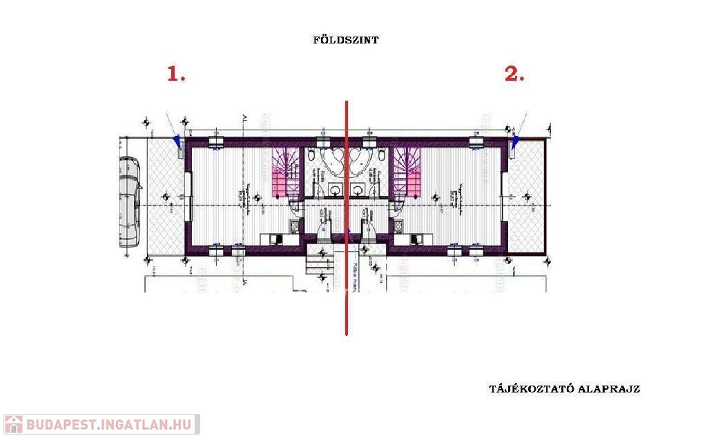 Budapest XXII. kerületében a Baross Gábor telepen eladó egy 83 nm-es, 1+3 szobás, két fürdős, teraszos új építésű ház, gépkocsi beállóval, saját kerttel.