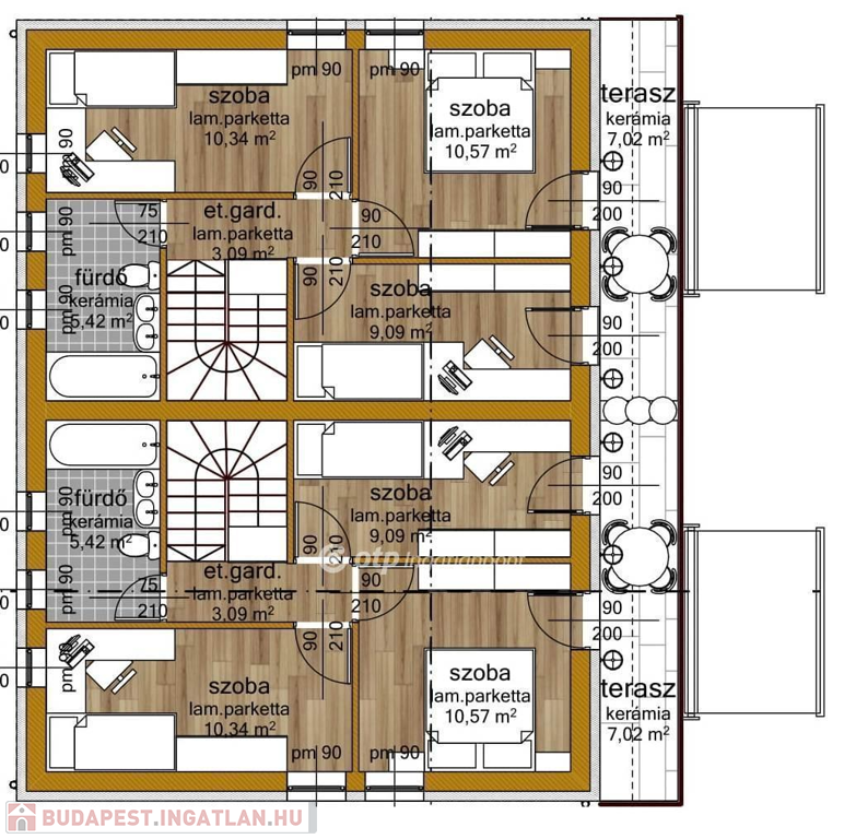 4 hálószoba: 8,1 m² | 10,6 m² | 10,3 m² | 9,1 m²
