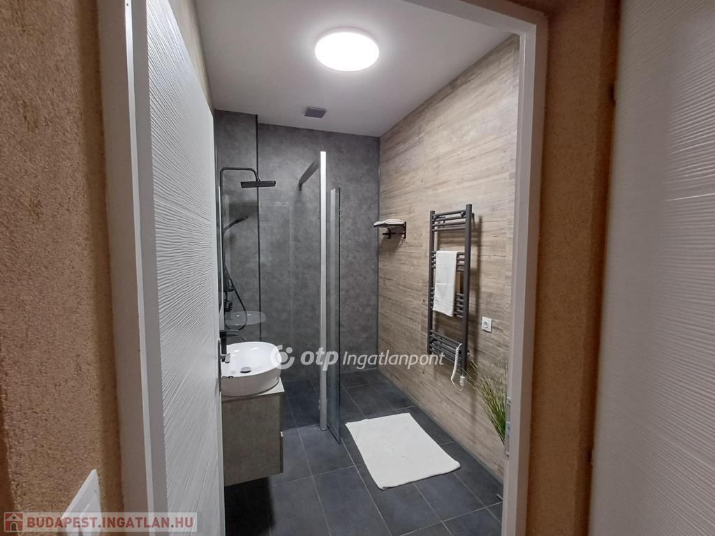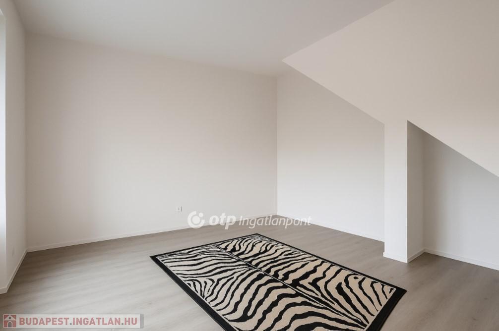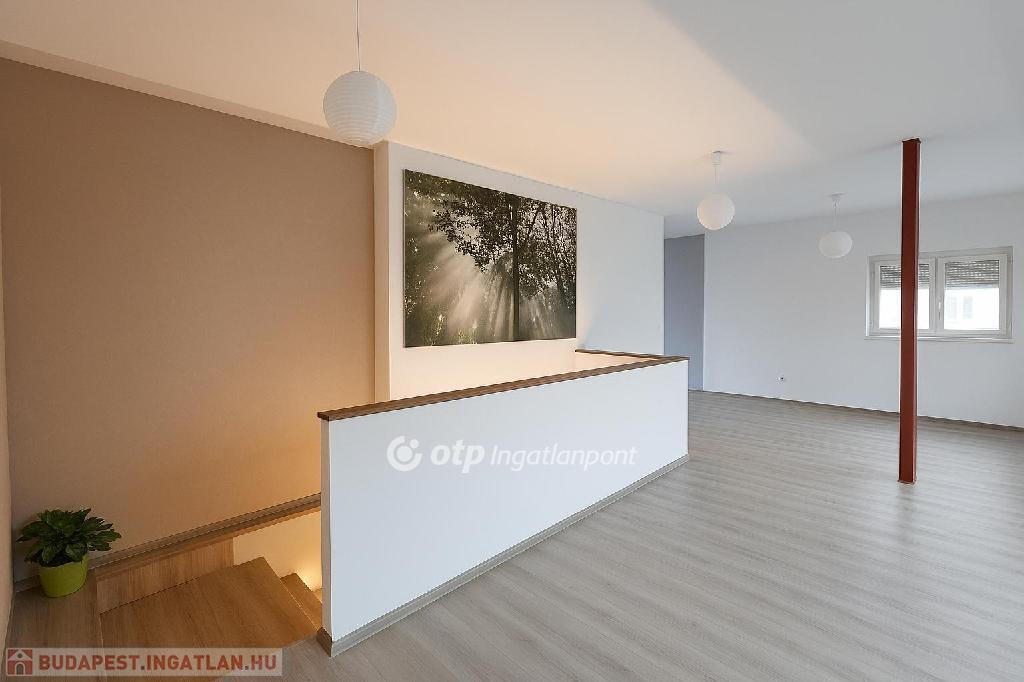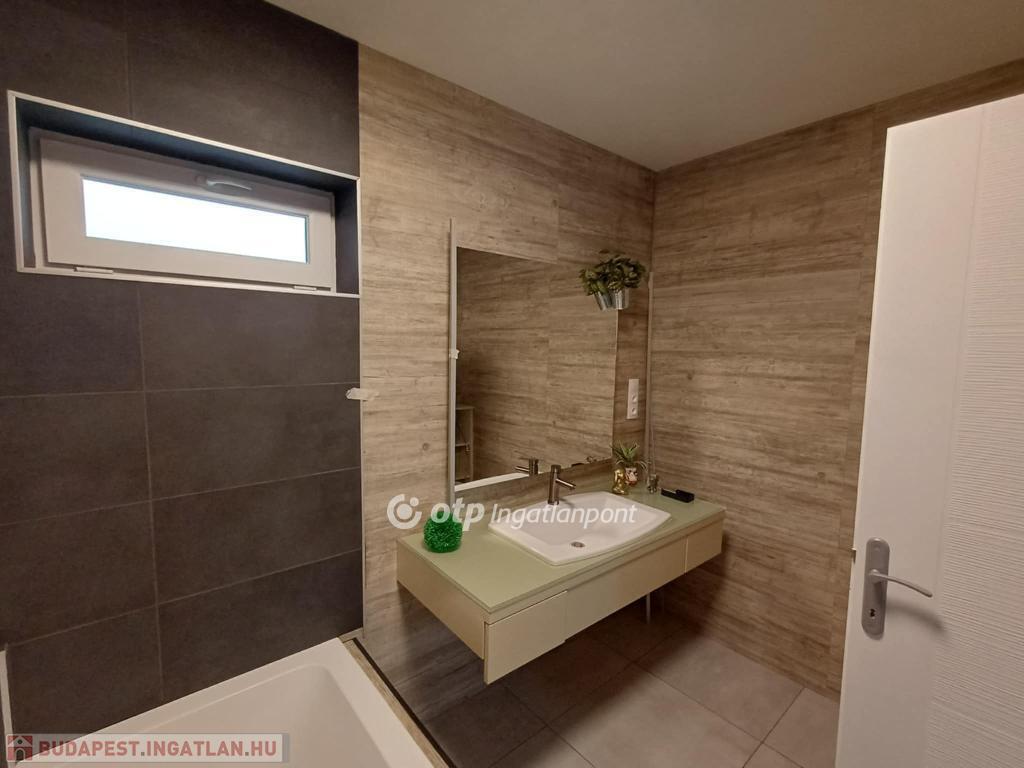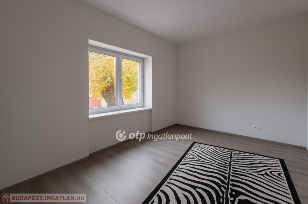Kertvárosban, csendes környéken, jó ízléssel megépített, igényes, napfényes, berendezett konyha-étkezővel ellátott lakás saját - még alakításra váró - kertrésszel. Az épület kétszintes (földszint + emelet), a hátsókertben tartozik hozzá egy összesen két gépjármű elhelyezésére alkalmas fedett-nyitott tároló is. Maga a lakás a földszinten tágas konyha-étkezővel és egy hálóval, valamint zuhanyzós fürdővel és külön wc-vel rendelkezik, míg az emeleten egy nagy, kertre néző teraszos nappalival és egy másik hálóval épület. A nappali délkelet-délnyugatra tájolt, a terasz keleti tájolású. A háló mellé még egy fürdő-wc tartozik. A két szintet elegáns lépcső köti össze, a jól szerkesztett és szépen megvilágított belső lépcső kevésbé fiatal lakóknak is kényelmes közlekedést biztosít. A lakásba egy burkolt teraszról léphetünk be, erről áttekinthetjük a saját kertrészt is.