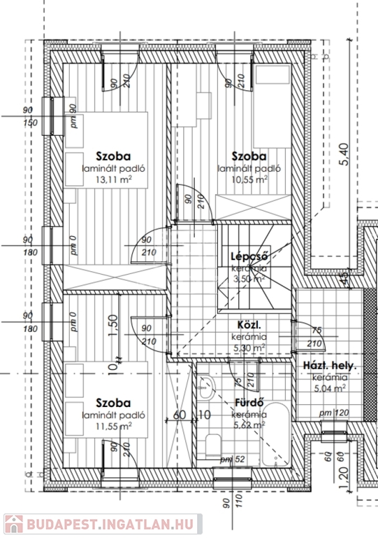 • 3 szoba 13.11 m2, 11.15 m2, 10.55 m2