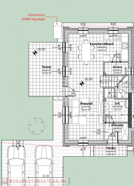 Fűtés: Az épület fűtését hőszivattyús rendszer látja el, minden helyiségben padlófűtés található.