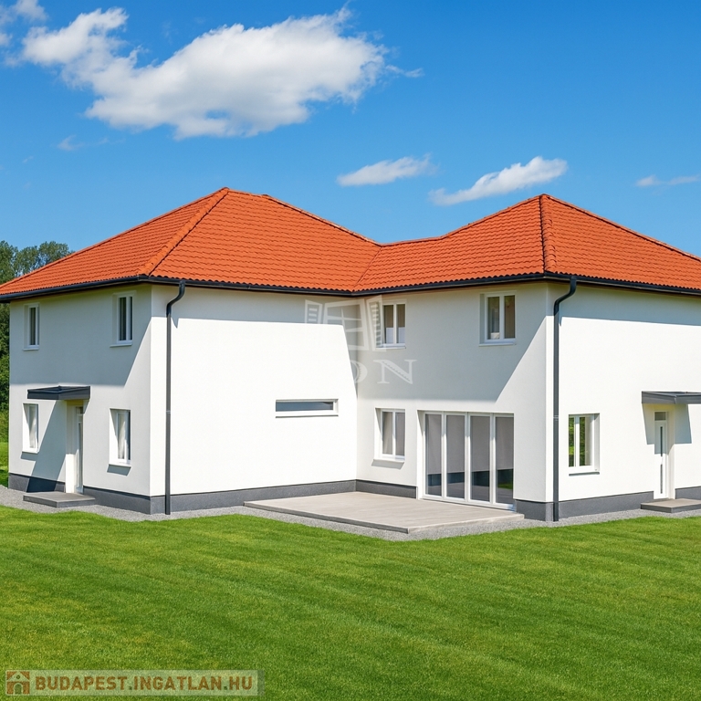 XXII. kerület NAGYTÉTÉNY kertvárosi részén 150 m²-es, nappali + 4 szobás, 2 fürdőszobás, új építésű, kulcsrakész ikerház, 30 m² terasszal és 540 m² saját telekrésszel eladó.