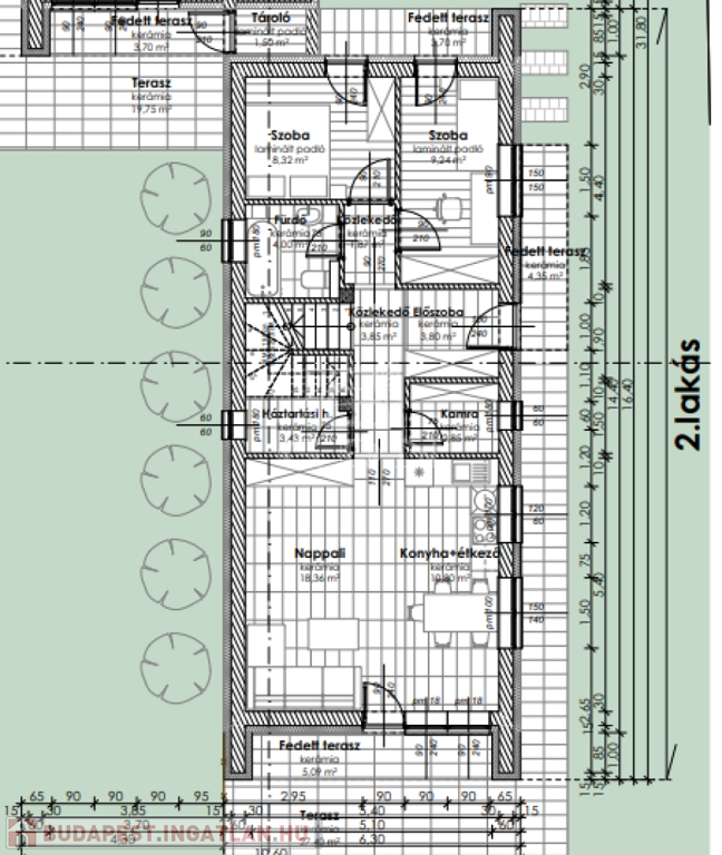 Második lakás ára 175 millió forint, lakótér alapterülete ~ 144 m2, terasz 20 m2, erkély 9 m2.