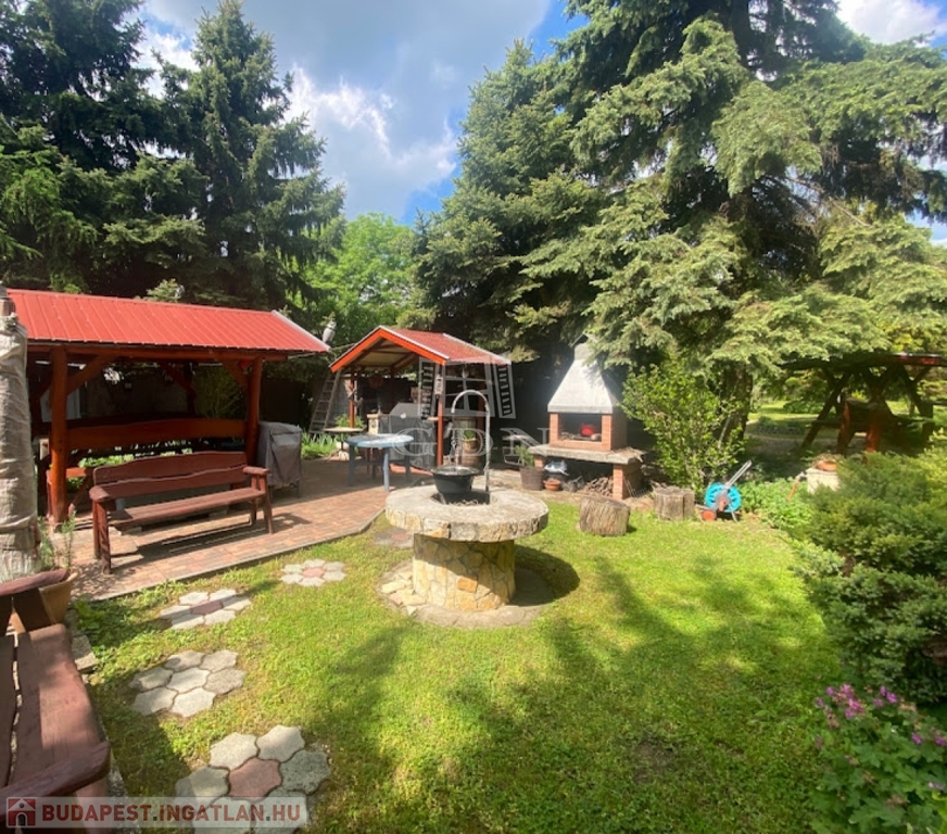 -kerti tárolókkal, sütőhellyel, kerti tóval, medencével rendelkezik