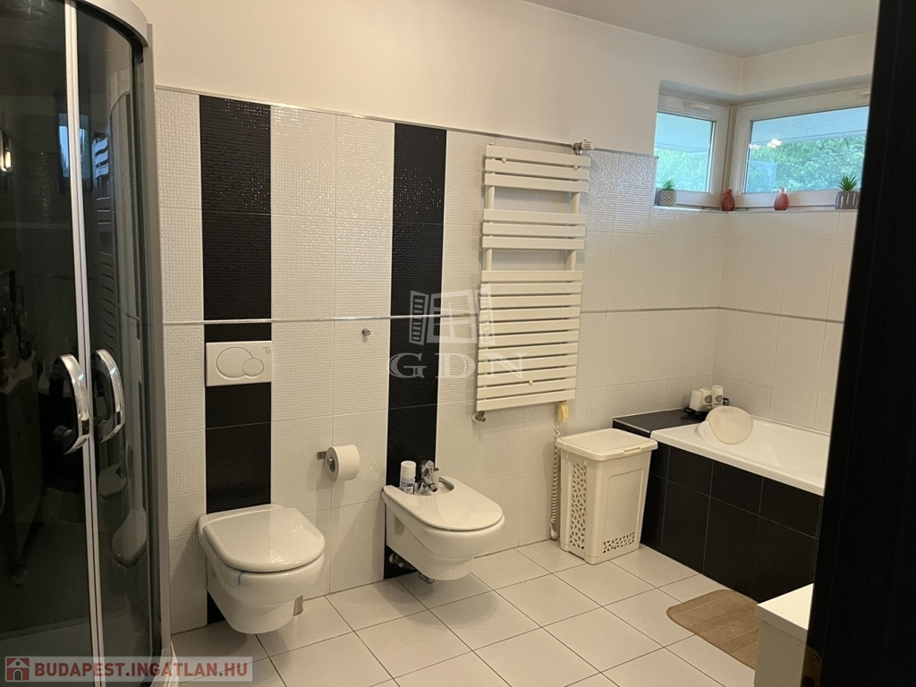 Következő szinten: gardrób szoba, vendégszoba terasszal, hálószoba, hatalmas fürdőszoba káddal, zuhanykabinnal, WC - vel.