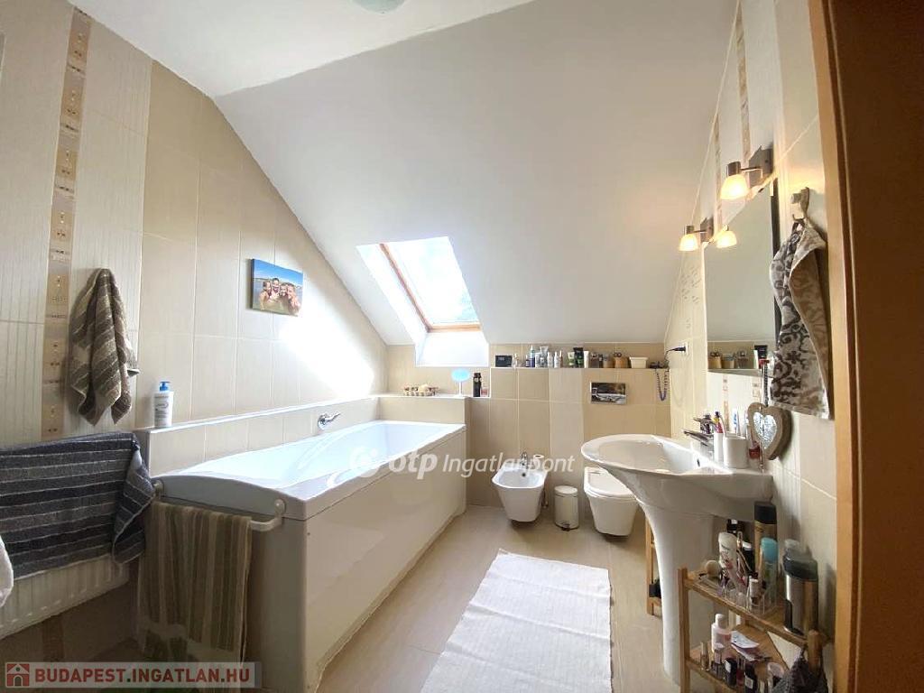 A 2008-ban épült, folyamatosan karbantartott 4 szintes házrészhez 893 m2 sík, tujákkal körülhatárolt, intim kert tartozik fedett kerti sütögetővel, több autó parkolására alkalmas felszíni beállóval.
