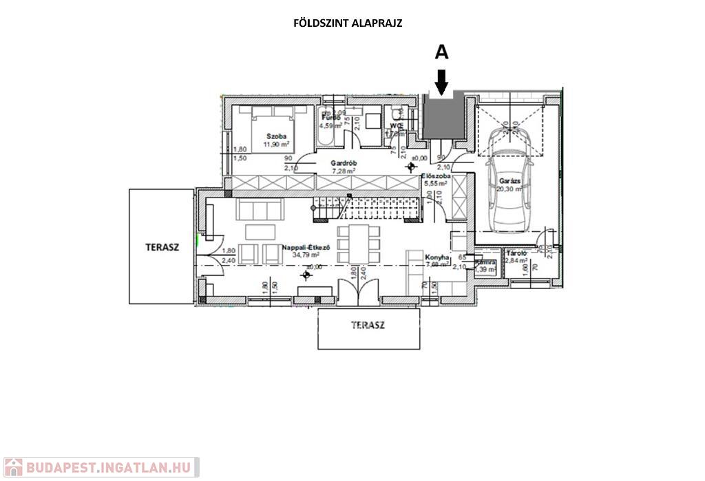 Amerikai konyhás nappali 42 m2, 17 m2 terasz kapcsolattal.