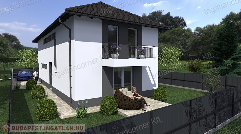 Az ingatlan első lakása alapterülete 86 m2 +5 m2 erkély telekméret 205 m2 104 M. Ft.