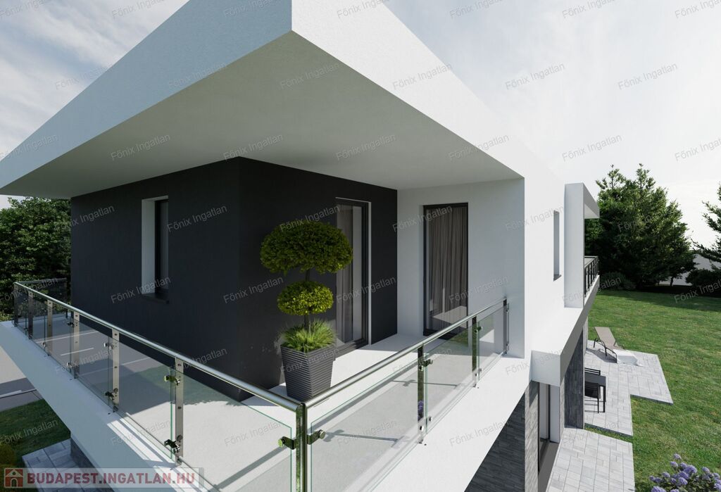 saját kert a házon felül: 120 m2, 14 m2-es garázs + kocsibeálló,