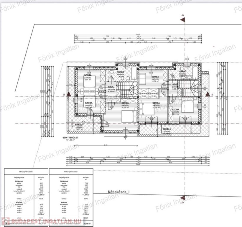 100 m2-es + 19 m2-es terasszal + 20 m2-es erkéllyel,