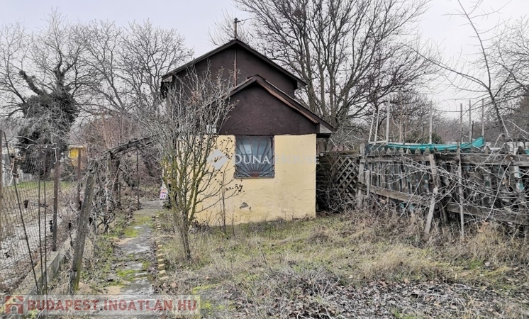 XXIII. kerület Soroksár Újtelep zártkerti részén, 961m2-es telken eladó egy 25m2 hasznos területtel rendelkező, nagyrészt tégla építésű, beton alapozású házikó, melléképületekkel.