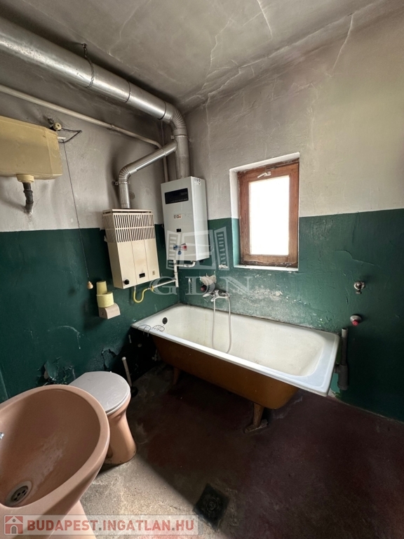 A melegvizet átfolyós gáz vízmelegítő biztosítja a fürdőszobában, a konyhában pedig egy kis villanybojler.