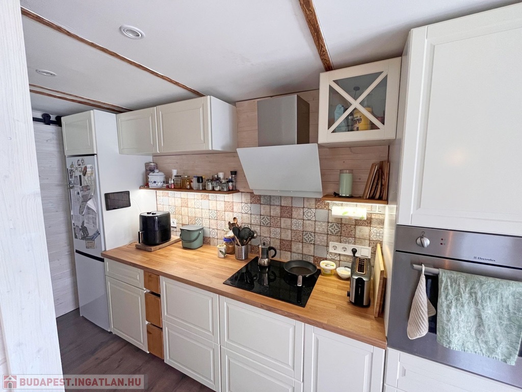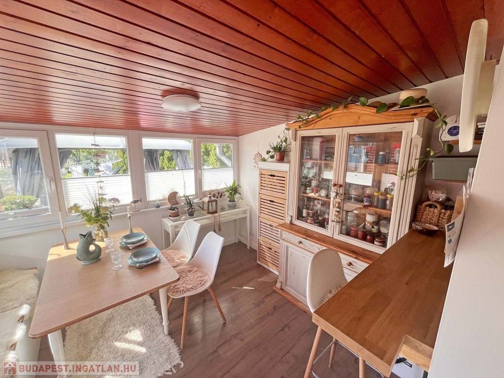 Megvételre kínálok, Budapesten a közismert Molnár-szigeten a Ráckevei (Soroksári)-Duna ágon igazán csendes helyen, a Duna parttól 1 utcányira, 537 nm-es méretű osztatlan közös telken, melyből 270 nm-es elkerített területen 48 nm-es könnyűszerkezetes, szigetelt, tetőtér beépítéses 1 egész és 2 félszobás, 2022-ben felújított kétszintes házat, gépkocsibeállóval, 10 nm-es fedett, nyitható terasszal, 15 nm-es kerti tárolóval, kivett zártkerti művelés alól kivett terület, gazdasági épület besorolással rendelkező ingatlant gondozott kerttel.