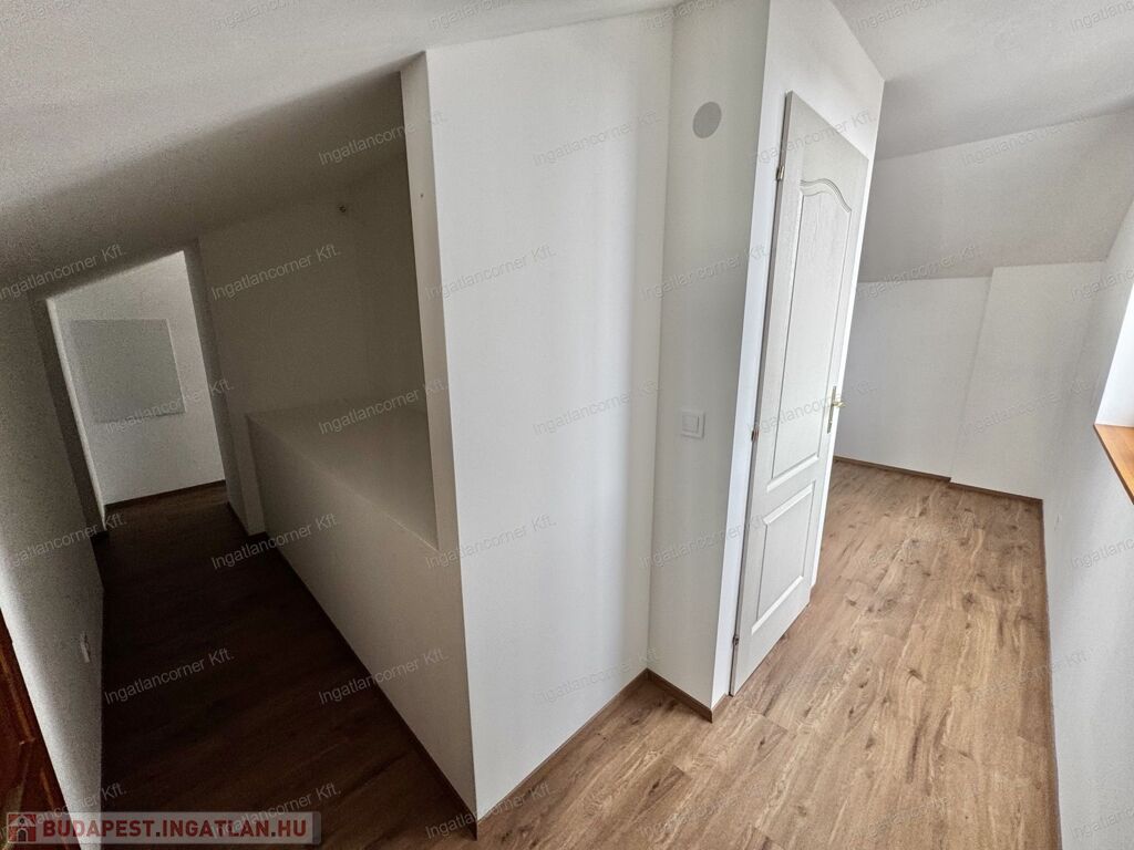 Elrendezését tekintve kiváló: előszoba, nappali, zuhanyzós + WC-s fürdőszoba, konyha, kamra, az emeleten szintén fürdőszoba káddal és WC-vel, 2 hálószoba, gardrób, még egy emelettel feljebb pedig hatalmas szoba saját gardróbbal. A padlástér pakolható.
