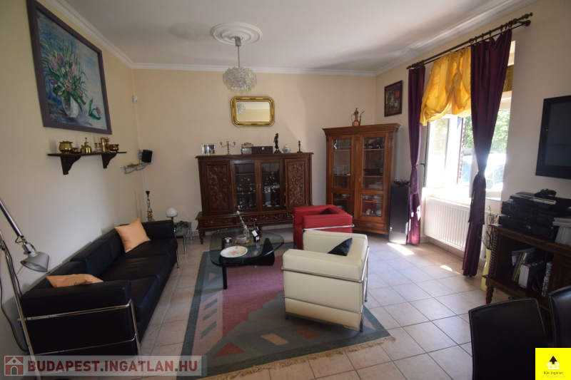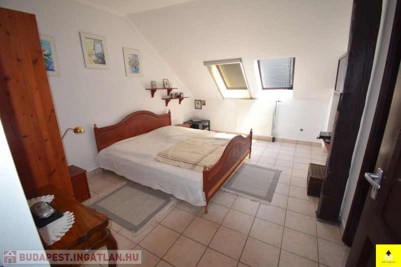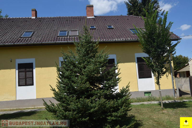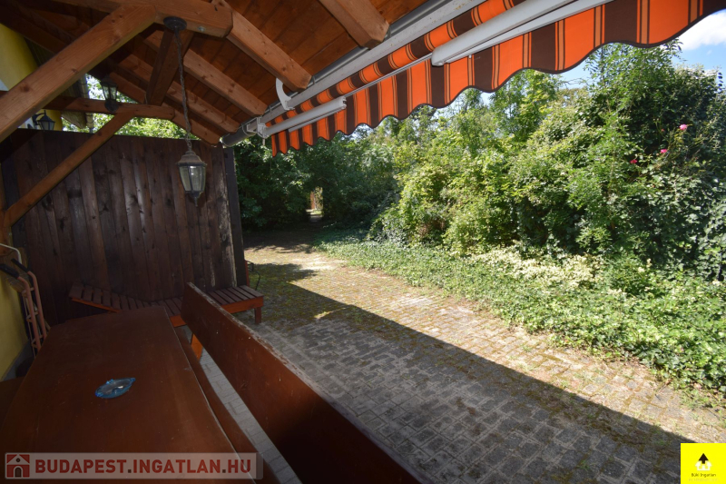 Az ingatlan 600 m2-es, bekerített telken helyezkedik el, melyet hatalmas fák tesznek árnyassá.