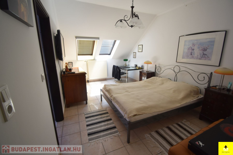 A felső szinten 3 hálószoba került kialakításra és mindhárom hálószobához saját fürdőszoba tartozik.