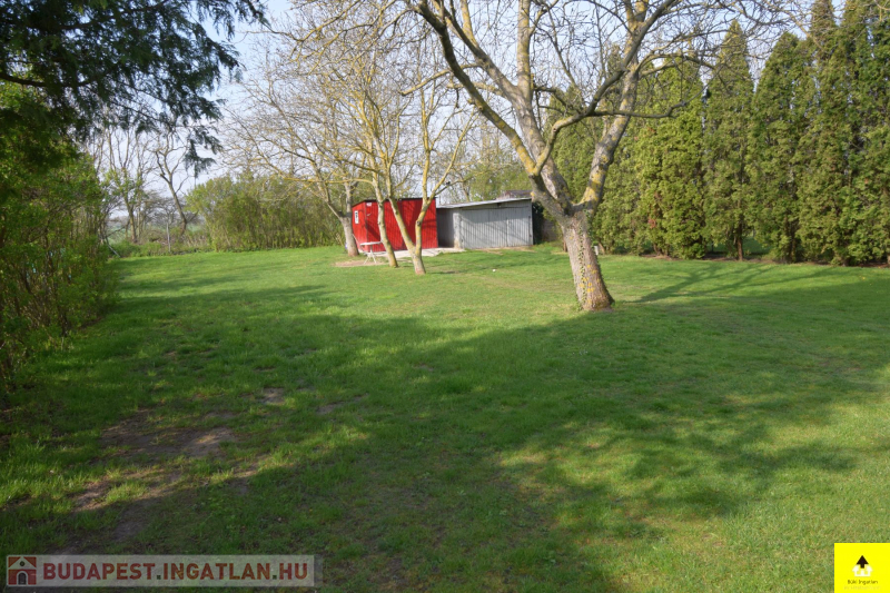 A telek 900 m2 nagyságú. Itt található 2 db garázs, melyből az egyik aknás. A kert gondozott és gyümölcsfákkal (diófa, almafák, szilvafák) beültetett.