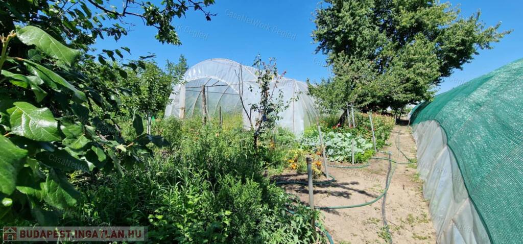 A kert rendezett és termő, rajta négy fóliasátor kapott helyet: kettő eperrel, egy virággal, egy pedig borsóval volt beültetve. Ezen felül gyümölcsfákcseresznye, meggy, barack, szilva – és egy szőlőlugas is gazdagítja a telket.