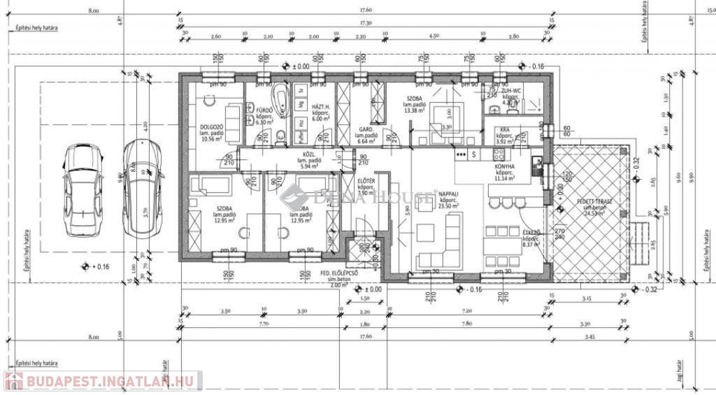 ÚJ ÉPÍTÉSŰ CSALÁDI HÁZ KULCSRAKÉSZEN Ceglédbercelen, Iskola utcában.Eladó egy 133m2-es családi ház, nappali + 4 szoba, nagy méretű, 1122 m²-es telken - az ár a telekkel együtt értendő!Ár: kulcsrakészen, terasz, konyhabútor és lámpatestek nélkülKiemelt előnyök:-ELŐFINANSZÍROZÁS lehetősége csak az elkészült ütemek után kell fizetni.-ÁRGARANCIA és kötbér vállalás a kivitelezőtől-Energiahatékony fűtés: BOSCH 3400 prémium levegő-víz hőszivattyú, vizes padlófűtéssel-3 rétegű prémium nyílászárók, választható belső burkolatok és ajtókMűszaki tartalom:Teherhordó falazat: Wienerberger Porotherm 30 N+FHomlokzati hőszigetelés: 15 cmTetőhéjazat választható: Leier Toscana tetőcserép választható színbenKülső nyílászárók: 3 réteg üvegezésű, kívül antracit, belül fehér prémium Gealan S8000 külső nyílászárók, 36 mm-es üvegezéssel + antracit, alumínium redőnyök + antracit műkő párkányVálaszfal: Wienerberger Porotherm 10 tégla válaszfalBejárati ajtó választható: Colorplast standard betéttelTeraszajtó: Dupla szárnyasBeltéri ajtó: Borovi Szicília (dekorfóliás) választható színbenHidegburkolat választható: 6.500 Ft / m2Melegburkolat választható: 6.000 Ft / m2Szaniterek választható: (kád, zuhanykabin, csaptelep stb.) 460.000Ft-igGépészet: Bosch 3400 levegő-víz hőszivattyú vizes padlófűtésselAz ár kulcsrakész állapotban történő átadással értendő, konyhabútor és lámpatestek nélkül!Közművek:Gáz: nincsVillany: ingatlanbanCsatorna: ingatlanbanVíz: ingatlanban